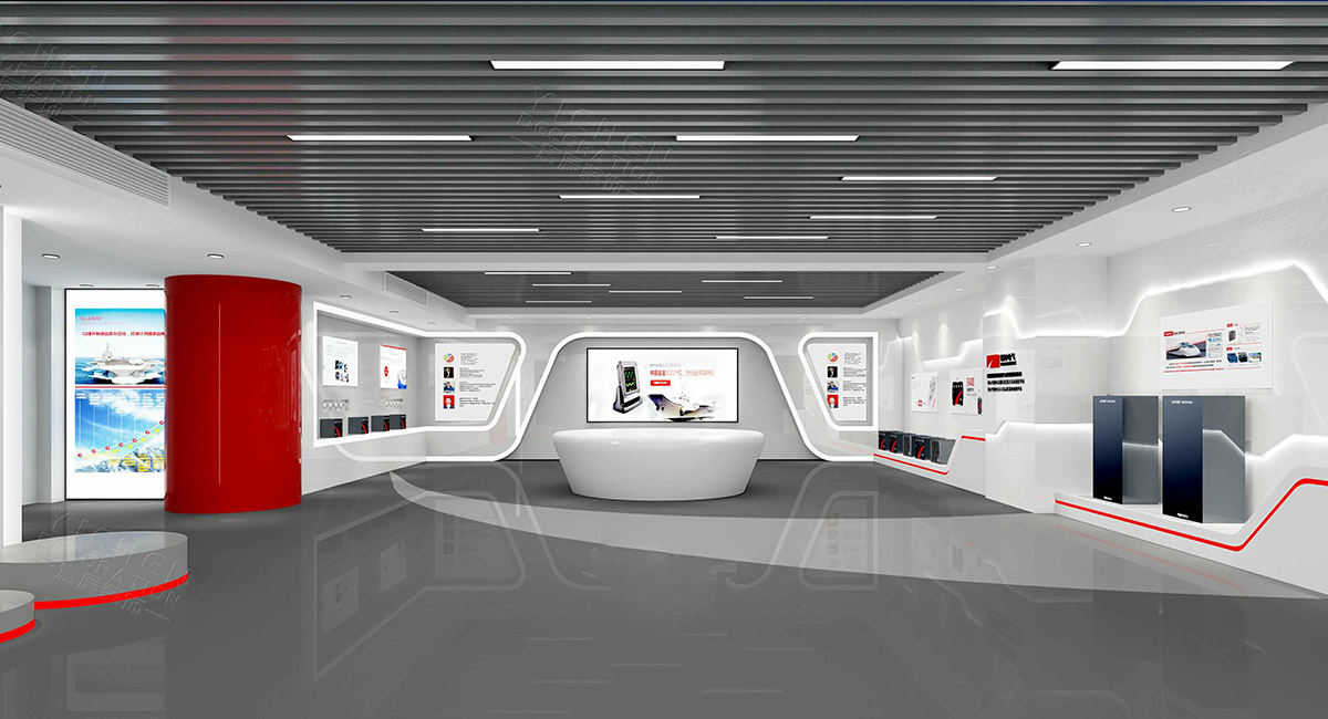 企業展廳設計應融合公司企業文化、展覽品等設計元素,選用新技術應用展現。空間布局應科學合理、和諧、統一,所以在設計中需要注意展覽廳的形態、色調、加工工藝、區域的統一,便于能夠更好地展現。