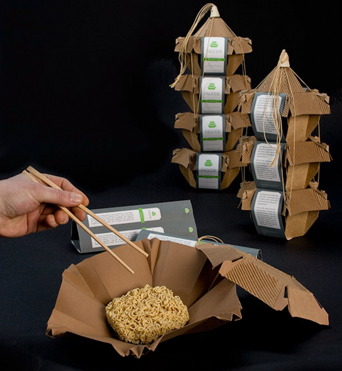 方便面試大家在生活中經常會吃到的食物,而且都習慣了原始的開啟方式。此款包裝革新了大家對原有方便面的原有認知,全新的開啟方式,全新的包裝材料給人一種煥然一新的感覺。而且吃面的容器都省了,還真是創意爆棚。