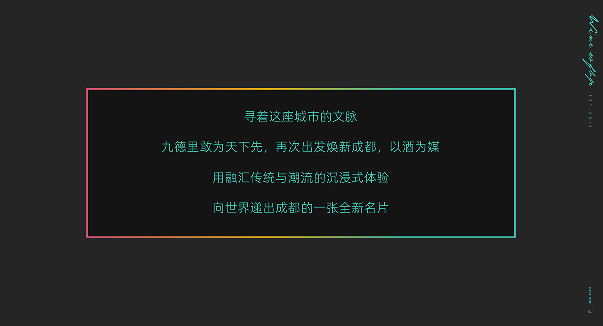 項目擬命名”九德里” 打造建面逾萬平米、煥新成都封面的中國首座世界名酒文旅綜合體。九德里將以世界名酒文化為核心,打造跨界生活、美食、消費、休閑、社交等全維時尚泛文化,通過對建筑界面形象的全面煥新、商圈外部氛圍的全新打造 聯合仁恒置地、錦江賓館、托尼洛蘭博基尼中心等,重塑天府中心商圈的世界影響力。