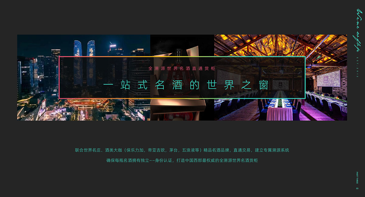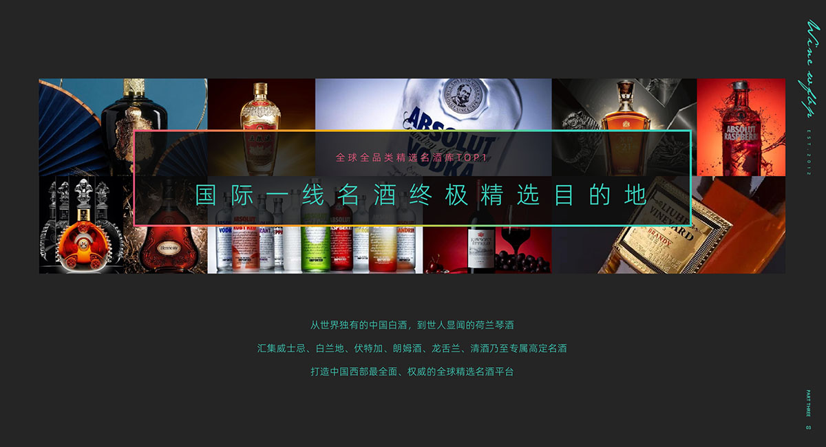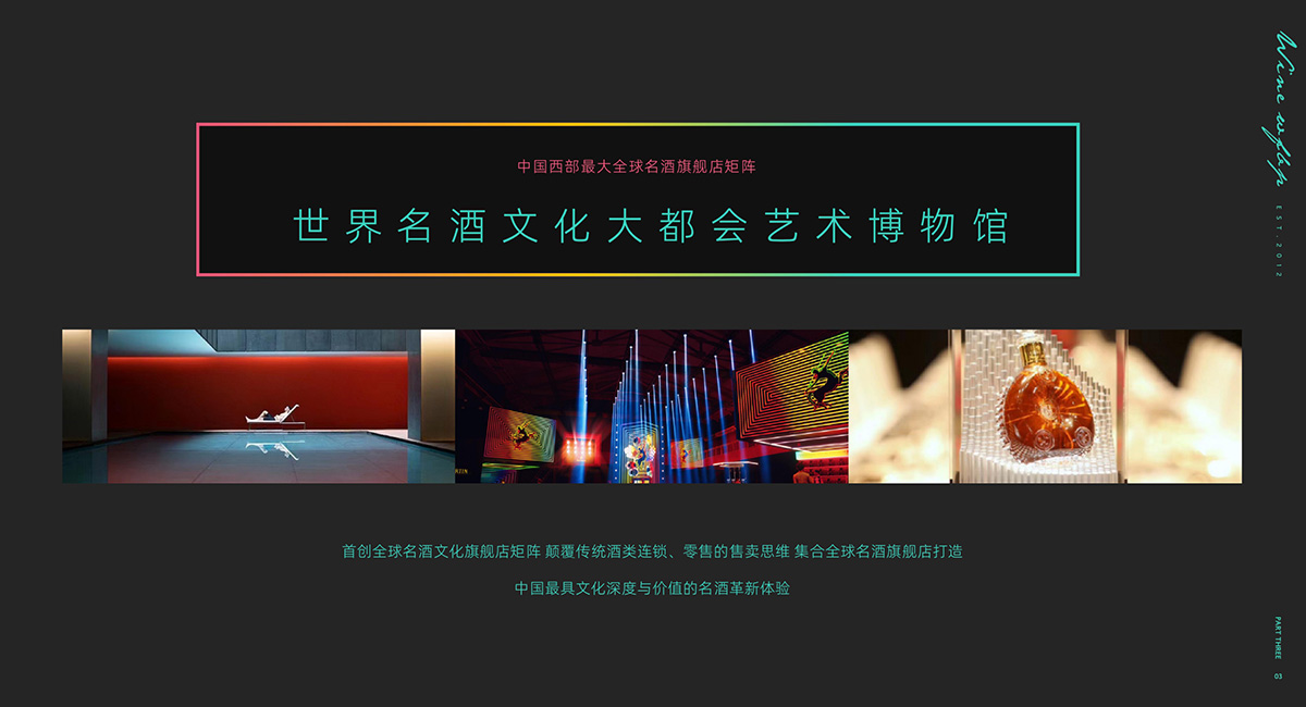 自天府中心創始,以酒文化為內核,開創世界名酒文旅全新模式和文化賦能時代;匯集全球知名酒品種,打造中國西部最全面、權威的全球精選名酒平臺。