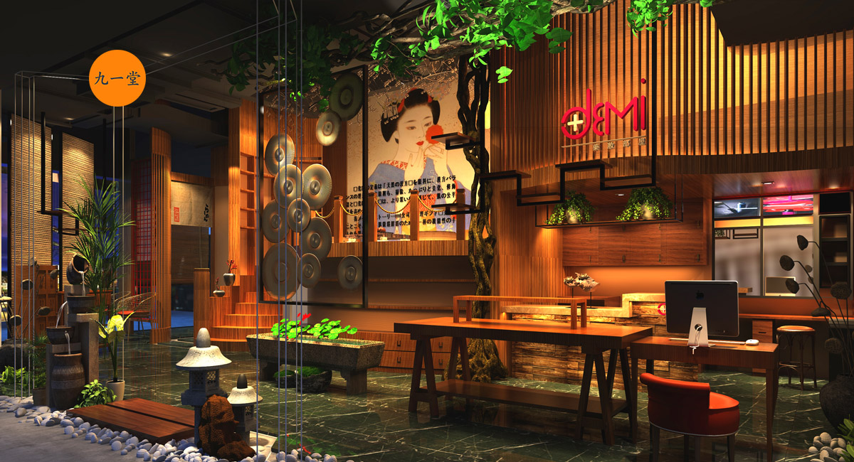 DEMI美容院的所有產品均采用韓國和日本最先進的護膚產品進口。產品與國內產品的最大區別在于品牌與眾不同。甲方是業內從事美容行業多年的人。選擇日式風格來裝飾自己的美容院并非偶然。一方面,大部分產品來自日本,另一方面,甲方非常喜歡日本風格的禪宗文化。成都九韻一雅堂的商業空間設計將使日本的枯山水景觀,一個個小小的風景的美化更具藝術性。整個空間非常精致和典雅,空間表現給人一種放松的感覺,而且緊湊和留白相互補充。九一堂商業空間設計將空間體驗設計發揮到極致。成都美容院的設計一直是九一堂的核心競爭力。門口的的景觀,以及踏腳石使用實木板制作,在外墻上繪制日本手繪,并在房間內建造一個假的二層,不僅增加了空間的樂趣性也添加了功能性的存儲空間。室內軟裝配櫻花?亞麻布?白色砂巖用于使產品在場景中顯示。除了空間體驗的設計,DEMI美容院還包括品牌形象的設計。極簡主義線條構成了標志的主體,體現了精致,修復和令人滿意的品牌內涵。