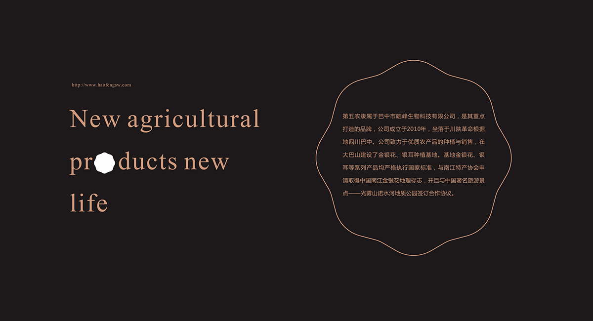 第五農隸屬于巴中市皓峰生物科技有限公司,是其重點打造的品牌,公司成立于2010年,坐落于川陜革命根據地四川巴中。公司致力于優(yōu)質農產品的種植與銷售,在大巴山建設了金銀花、銀耳種植基地。基地金銀花、銀耳等系列產品均嚴格執(zhí)行國家標準,與南江特產協(xié)會申請取得中國南江金銀花地理標志,并且與中國著名旅游景點一光霧山諾水河地質公園簽訂合作協(xié)議。光多山區(qū)位于四川省巴中市南江縣光山鎮(zhèn),地處川映交界處米倉山南景區(qū)幅員遼闊,面積830余平方千米主峰海拔2507米因常年云霧緣繞而得名。品牌得天獨厚的自然條件成就了品牌天然的品質。