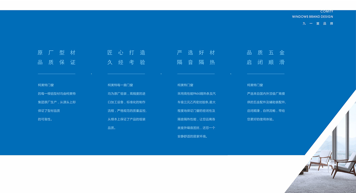 柯美特建材集團股份有限公司(創建于2006年,是一家集研發、生產、銷售于一體的大型建材集團。目前已建成占地40多萬平方米的西南、華東兩大生產基地,建筑塑料異型材年產能8萬噸、建筑鋁型材年產能3萬噸、工業鋁材年產能1.5萬噸、系統門窗年產能5萬平米,在全國范圍內形成強大的供貨保障能力。 柯美特將繼續專注于每一個客戶、專業于每一件產品、專心于每一次服務,致力于為廣大合作伙伴創造新的價值,致力于推動中國建材行業的發展,致力于讓更多的人生活得更美好。立足當下,放眼未來,為成為備受尊重的全球化公司而努力。