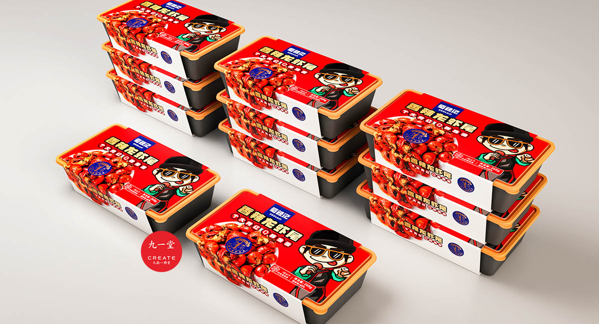 香辣龍尾蝦盒裝堆放效果
