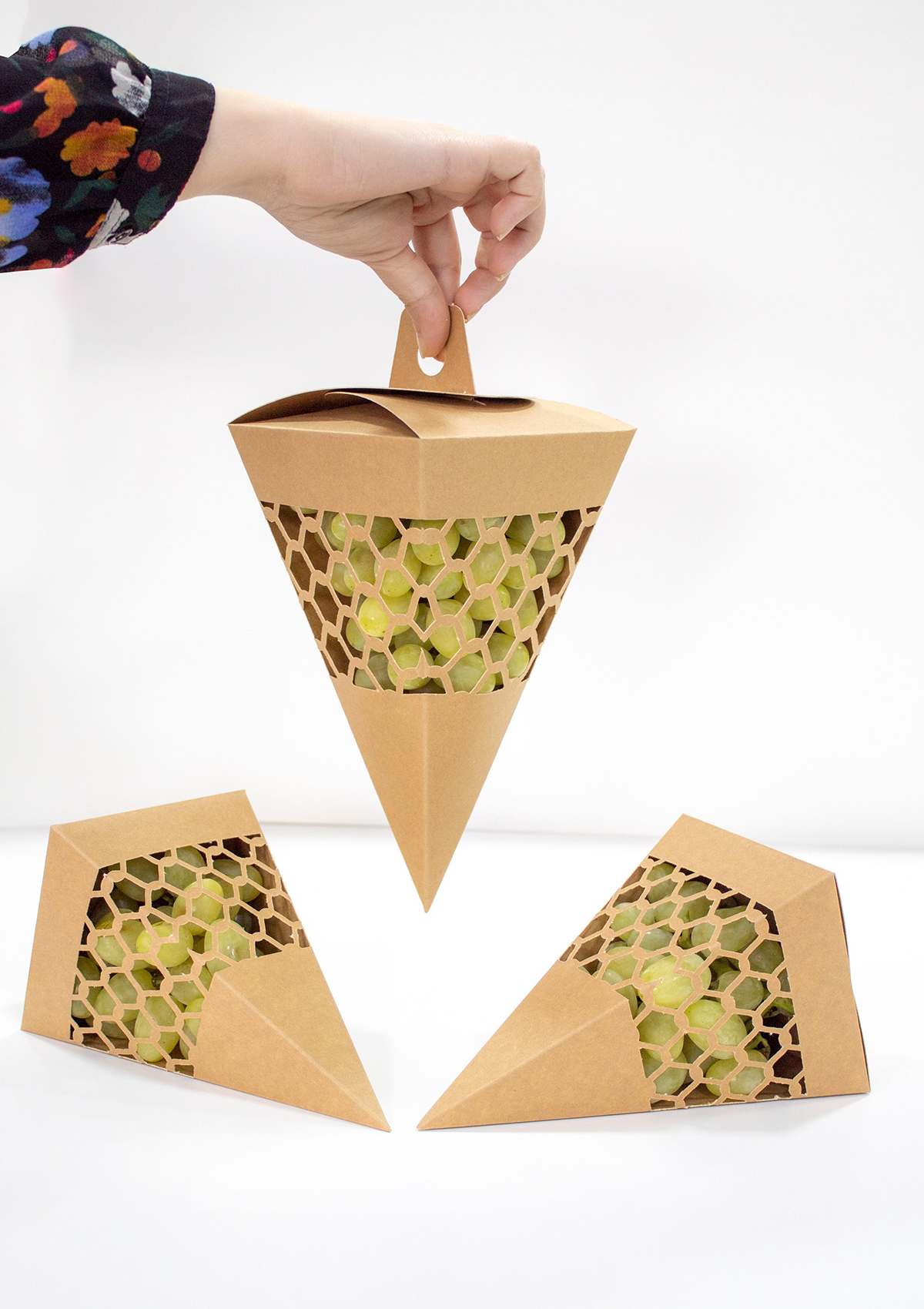 此款包裝設計針對葡萄的屬性,充分考慮到葡萄容易被擠壓損壞的問題,又解決了水果類包裝需要透氣的問題,是不可多得的食品包裝設計。